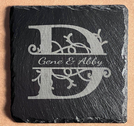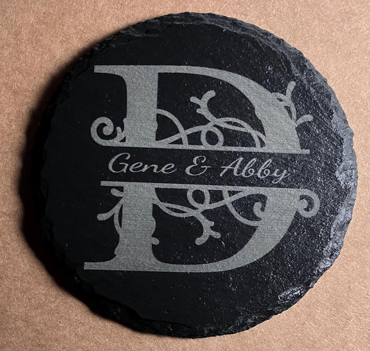 Custom 4” Monogramed Slate Coasters Set of 4